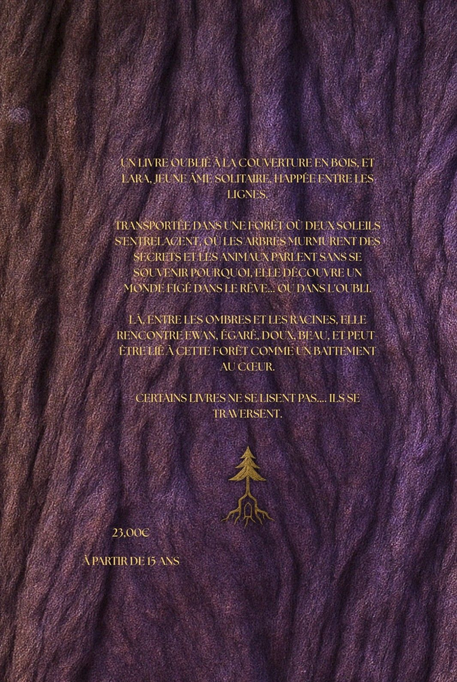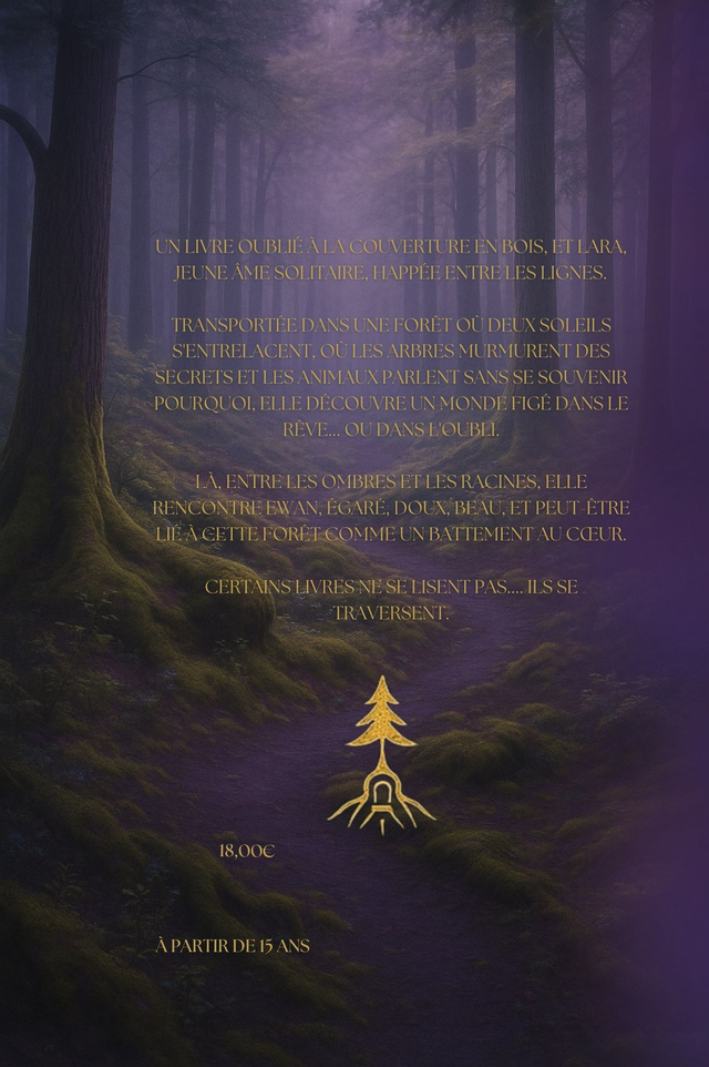 TRANSPORTÉE DANS UNE FORÊT OU DEUX SOLEILS S'ENTRELACENT, OU LES ARBRES MURMURENT DES SECRETS ET LES ANIMAUX PARLENT SANS SE SOUVENIR POURQUOI, ELLE DÉCOUVRE UN MONDE FIGÉ DANS LE REVE... OU DANS L'OUBLI.